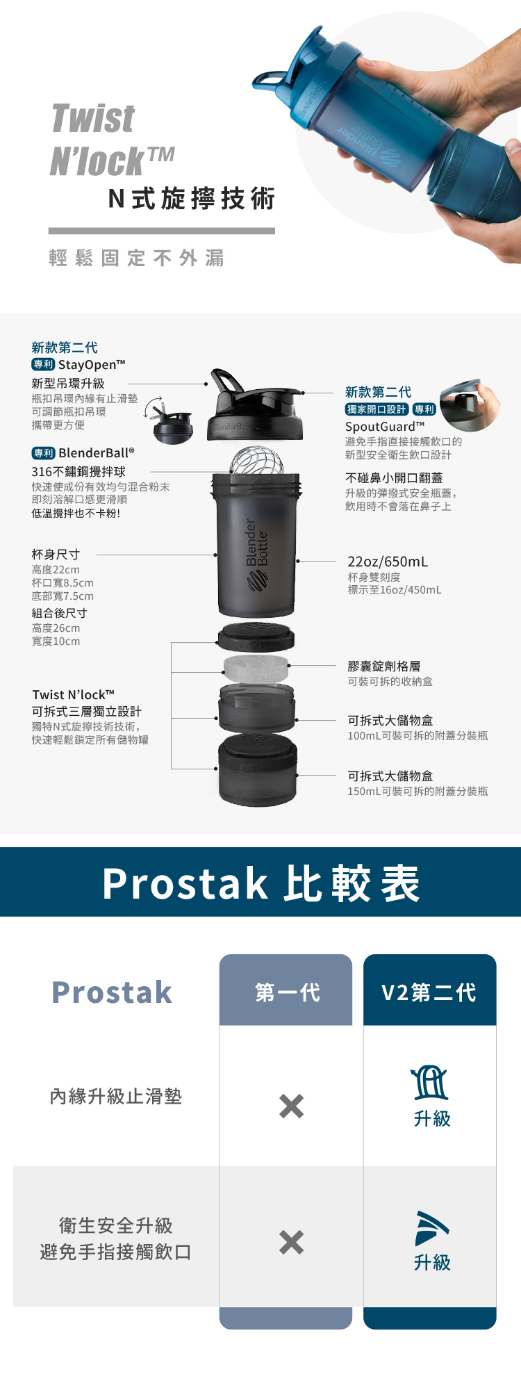 [美國 Blender Bottle] Prostak 三層搖搖杯